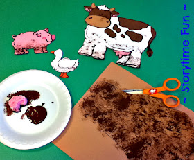 I also cut a mud puddle shape out of brown construction paper and sponged brown paint onto it.